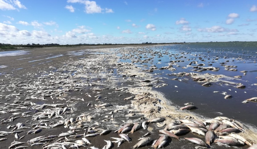 En la mañana de hoy la playa del Camino Costero del Parque Natural Laguna de Gómez se vio sorprendida por una impactante cantidad de peces muertos. Las imágenes muestran una alfombra de especies que habitan en la laguna de Junín y que por acción del viento sur que corria en las primeras horas del día llegaron a su costa. Equipos Municipales trabajaban para retirar los peces muertos del lugar. La naturaleza jugó una mala pasada con la fauna íctica de la laguna, ya que al bajo caudal de agua que se venía registrando, se sumó un fuerte viento sur que sopló durante toda la noche. Como consecuencia de ello miles de peces fueron arrojados hacia la costa seca, generándose una masiva mortandad. Hay una mayoría de pejerreyes (también carpas y bagres), la especie más buscada por los pescadores y los turistas que llegan a Junín y que venía reponiéndose en los espejos de agua, luego de temporadas con baja población. Personal municipal trabajaba por estas horas para limpiar la costa de los peces muertos y evitar las consecuencias derivadas del olor que podrían despedir.